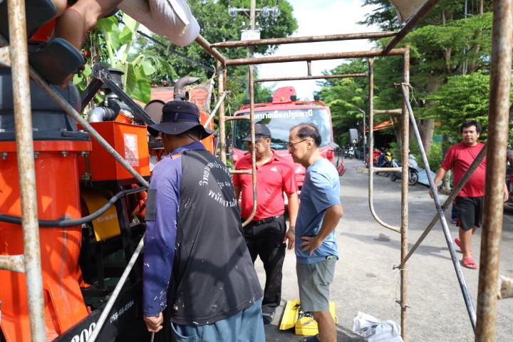 นายกเทศมนตรีเมืองปทุมธานี ลงพื้นที่ติดตามการปฏิบัติงานของเจ้าหน้าที่เทศบาลเมืองปทุมธานี แก้ไขปัญหาอุทกภัย วันที่ 4 ต.ค. 2568