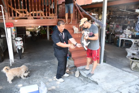 งานสัตวแพทย์ กองสาธารณสุขและสิ่งแวดล้อม เทศบาลเมืองปทุมธานี พร้อมด้วย ประธานชุมชน อสม.ชุมชน และคณะกรรมการ ออกปฏิบัติงาน ฉีดวัคซีนป้องกันโรคพิษสุนัขบ้า ประจำปี 2569 ให้กับสุนัขและแมวภายในชุมชนวัดหงษ์ปทุมาวาส ชุมชนคลองพิกุล ชุมชนบางโพธิ์ใน ชุมชนบางปรอก ชุมชนพัฒนสัมพันธ์ ชุมชนสามเรือนถาวร และชุมชนเจริญผลวัฒนา ในเขตพื้นที่ ต.บางปรอก เพื่อลดความเสี่ยงต่อโรคพิษสุนัขบ้า ให้กับพี่น้องประชาชนในเขตเทศบาลเมืองปทุมธานี