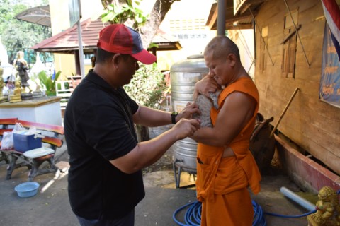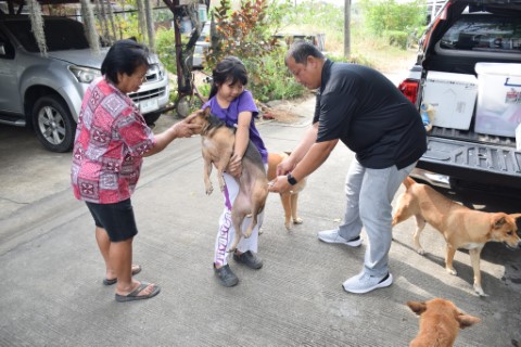 งานสัตวแพทย์ กองสาธารณสุขและสิ่งแวดล้อม เทศบาลเมืองปทุมธานี พร้อมด้วย ประธานชุมชน อสม.ชุมชน และคณะกรรมการ ออกปฏิบัติงาน ฉีดวัคซีนป้องกันโรคพิษสุนัขบ้า ประจำปี 2569 ให้กับสุนัขและแมวภายในชุมชนเทศสัมพันธ์ ชุมชนโสภาราม ชุมชนเทพพัฒนา ชุมชนวัดฉาง ชุมชนร่วมจิตต์มุสลิม ชุมชนวัดโคก และชุมชนสุขใจพัฒนา ในเขตพื้นที่ ต.บางปรอก เพื่อลดความเสี่ยงต่อโรคพิษสุนัขบ้า ให้กับพี่น้องประชาชนในเขตเทศบาลเมืองปทุมธานี