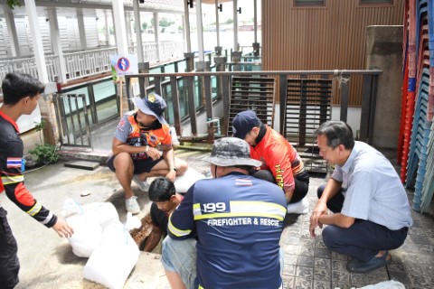 นายปัญญา ชลคงคา รองนายกเทศมนตรีเมืองปทุมธานี พร้อมด้วย นางสาวรุ่งทิพย์ กาฬภักดี รองปลัดเทศบาล ลงพื้นที่ติดตามการปฏิบัติงานของเจ้าหน้าที่งานป้องกันและบรรเทาสาธารณภัย และกองช่าง เทศบาลเมืองปทุมธานี ดังนี้ - เสริมแนวกระสอบทรายบริเวณข้างโรงน้ำแข็งริมเขื่อนชุมชนสามเรือนถาวร - อุดท่อระบายน้ำ พร้อมเดินเครื่องสูบน้ำ บริเวณริมเขื่อนตลาดเทศบาลเมืองปทุมธานี - นำกระสอบทรายอุดท่อระบายน้ำ บริเวณแพขาว สวนเทพปทุมเฉลิมพระเกียรติฯ - วางแนวกระสอบทราย บริเวณสำนักงานเหล่ากาชาด จังหวัดปทุมธานี เพื่อป้องกันน้ำในแม่น้ำเจ้าพระยาเอ่อล้นคันกั้นน้ำ เนื่องจากปริมาณน้ำในแม่น้ำเจ้าพระยาเพิ่มสูงขึ้นจากการระบายน้ำอย่างต่อเนื่อง จึงเร่งวางแนวทางป้องกันและบรรเทาความเดือดร้อนให้ประชาชน
