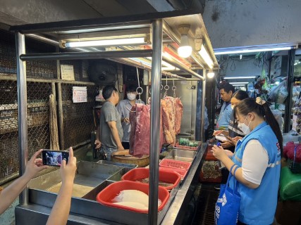 งานเทศกิจ เทศบาลเมืองปทุมธานี ร่วมกับเจ้าหน้าที่จากสาธารณสุขจังหวัดปทุมธานี ลงพื้นที่สุ่มตรวจหาสารฟอร์มาลีน ที่ปนเปื้อนในอาหารประเภทเนื้อวัว ที่ตลาดสดอินเตอร์มาร์ท และตลาดเทศบาลเมืองปทุมธานี เพื่อป้องกันไม่ให้มีการนำเนื้อวัวที่มีสารฟอร์มาลีนปนเปื้อนตามที่เป็นข่าว (ตรวจจับเนื้อเถื่อนปนเปื้อนฟอร์มมาลีน ที่พื้นที่คลองหนึ่ง อ.คลองหลวง จ.ปทุมธานี) เข้ามาขายในตลาดภายในเขตเทศบาลฯ