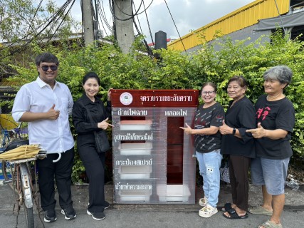 นายเกียรติศักดิ์ หาญสวัสดิ์ รองนายกเทศมนตรีเมืองปทุมธานี พร้อมด้วย นางพูลศรี หาญสวัสดิ์ หัวหน้าศูนย์บริการสาธารณสุข รักษาราชการแทน ผู้อำนวยการกองสาธารณสุขและสิ่งแวดล้อม และเจ้าหน้าที่กองสาธารณสุขและสิ่งแวดล้อม เทศบาลเมืองปทุมธานี ลงพื้นที่มอบตู้จัดเก็บขยะอันตราย ให้แก่ชุมชนในเขตพื้นที่เทศบาลฯ ดังนี้ - ชุมชนวัดโคก - ชุมชนร่วมจิตต์มุสลิม - ชุมชนวัดฉาง - ชุมชนเทพพัฒนา - ชุมชนโสภาราม - ชุมชนสุขใจพัฒนา - ชุมชนสมประสงค์ - ชุมชนปทุมวิลเลจ - ชุมชนสามเรือนถาวร - ชุมชนเทศสัมพันธ์ - ชุมชนตลาดเจริญผลวัฒนา - ชุมชนพัฒนสัมพันธ์ - ชุมชนบางปรอก - ชุมชนวัดหงษ์ปทุมาวาส - ชุมชนคลองพิกุล - ชุมชนบางโพธิ์ใน - ชุมชนฉัตรหลวง - ชุมชนซื่อตรง - ชุมชนปทุมทอง - ชุมชนกฤษณา โดยมีประธานและคณะกรรมการชุมชน เป็นตัวแทนรับมอบ เพื่อให้ชุมชนดำเนินการจัดการของเสียอันตรายจากชุมชน ตั้งแต่การคัดแยก เก็บรวบรวม และการส่งไปกำจัดอย่างถูกวิธีเพื่อป้องกันผลกระทบต่อสิ่งแวดล้อมและสุขอนามัยของประชาชน