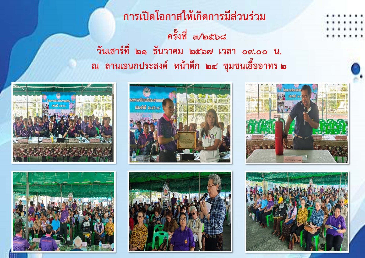 เทศบาลเมืองปทุมธานี โดยกองสวัสดิการสังคมลงพื้นที่ดำเนินการจัดเวทีประชาคมเมืองสัญจร ประจำปี 2568