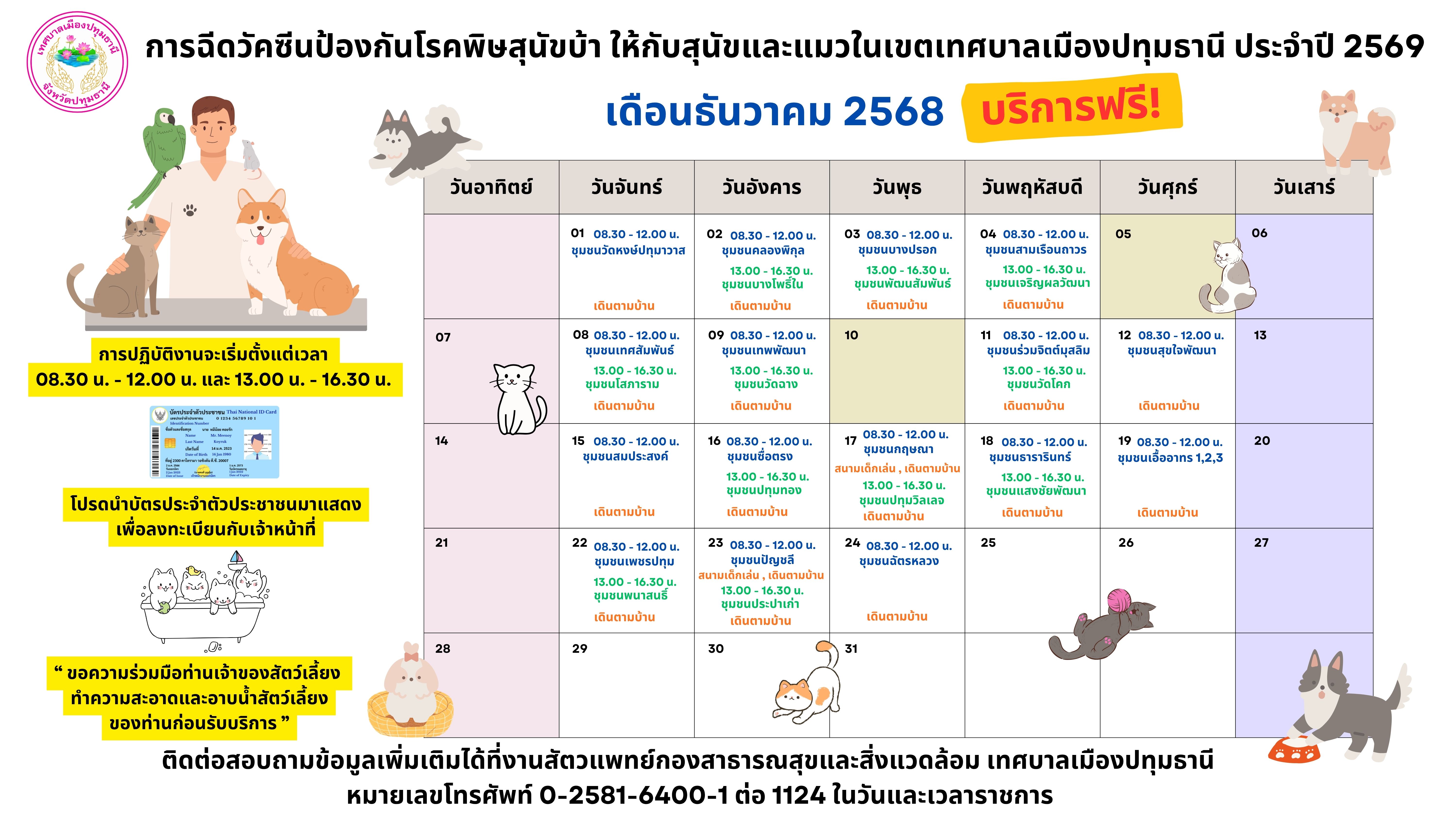 คำตอบ : ติดต่อกองสาธารณสุขและสิ่งแวดล้อม เทศบาลเมืองปทุมธานี หมายเลขโทรศัพท์ 0-2581-6400 ต่อ 1124
